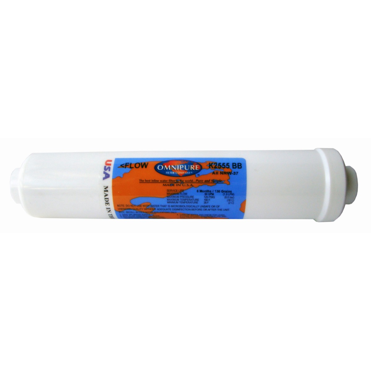 K2555-BB inline water filter helps produce deionized water (removes sodium, calcium, iron, copper, etc). Used for ultra-pure water filtration. For special filtration, home, and aquarium use.