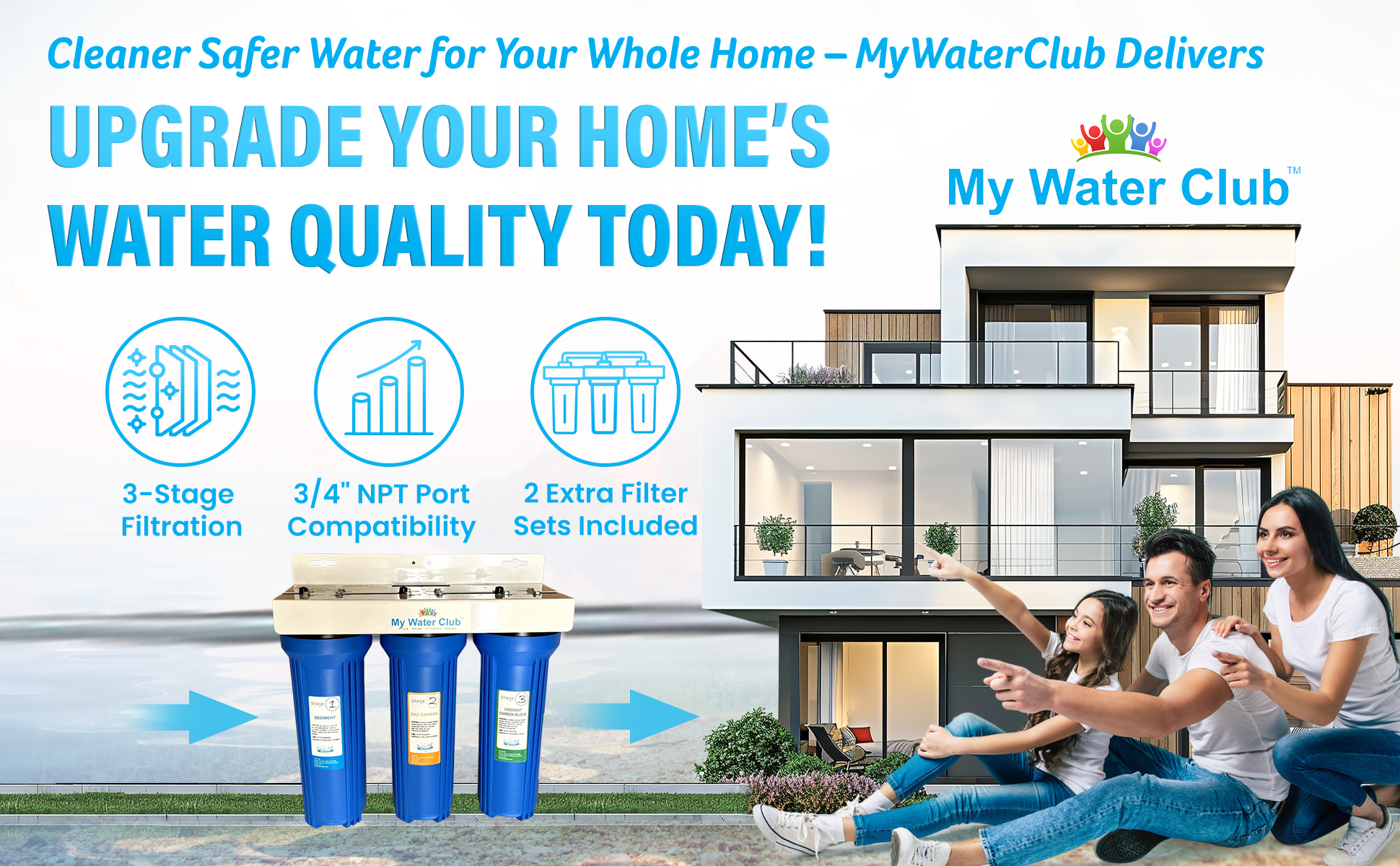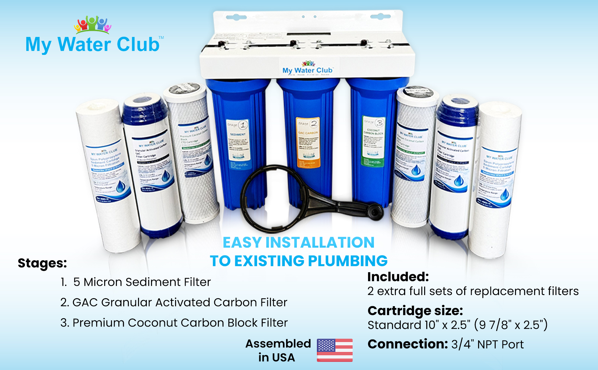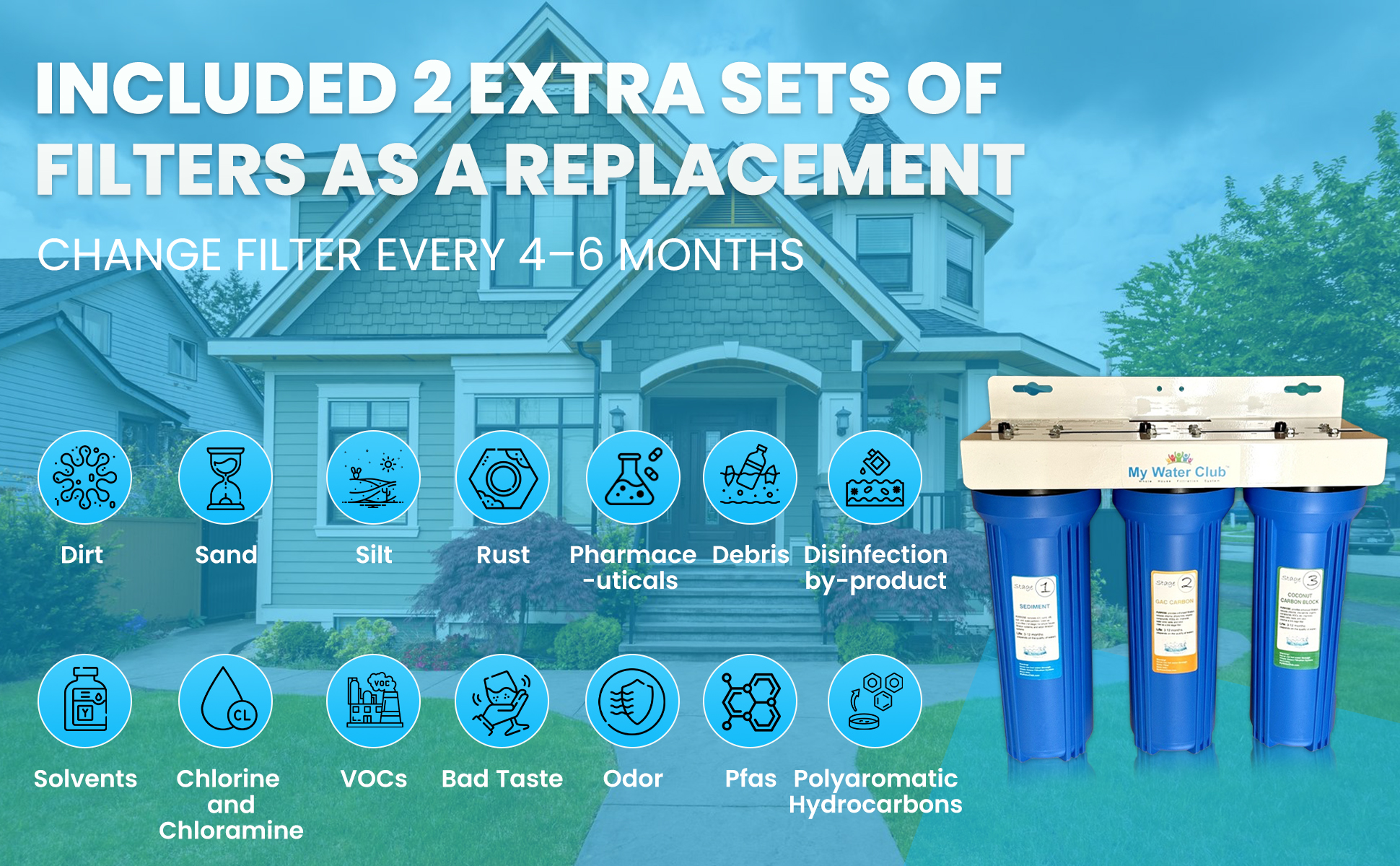 3-Stage Whole House Water Filter System with 2 Premium Extra Filter Sets , 3/4" Port quantity