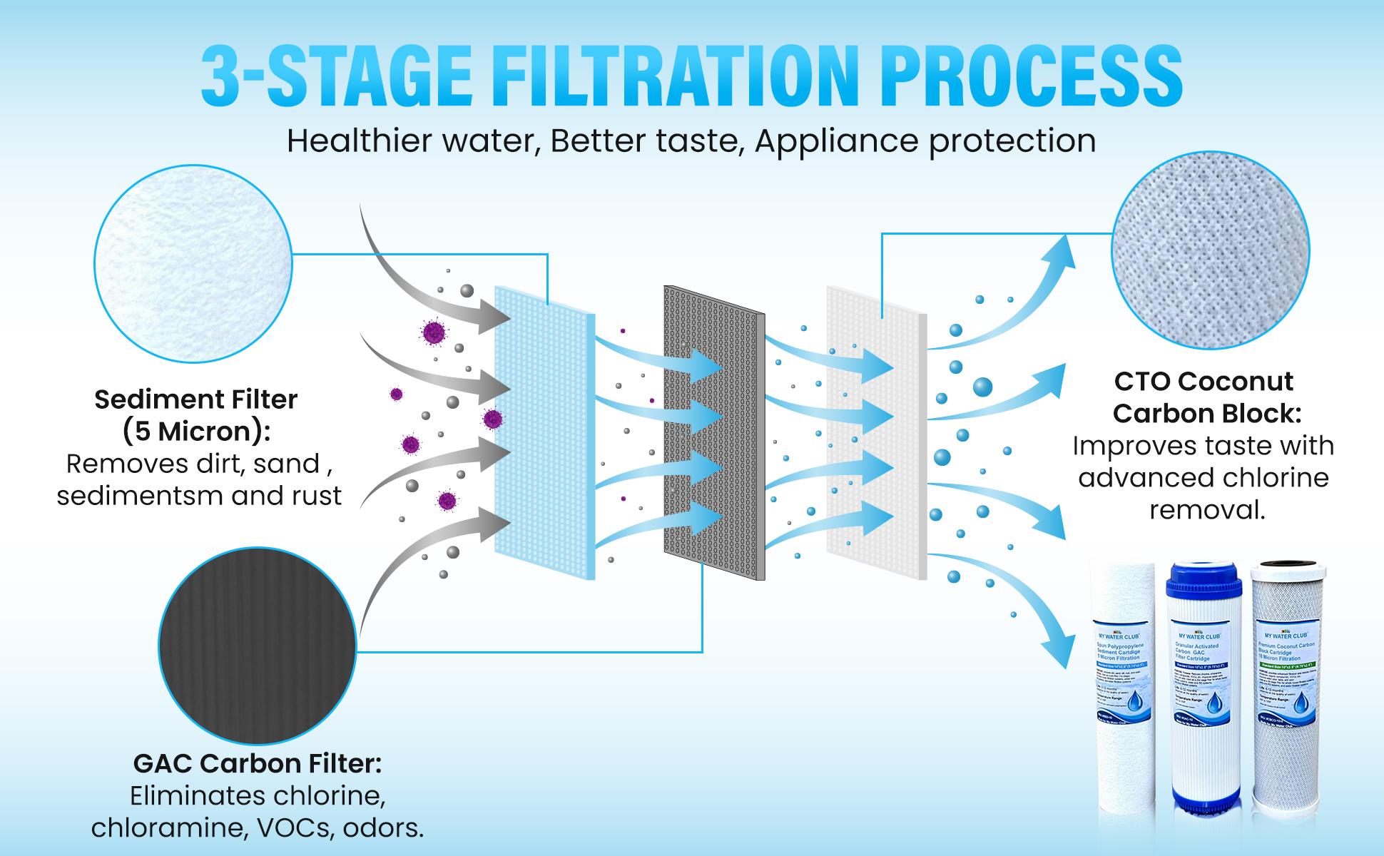 4-Year Supply (24 pcs) for 3 Stage Whole House Filtration System or Reverse Osmosis RO. Replacement Set of 3 filters: Sediment, GAC, CTO Carbon Block (Standard Set, $14.90 per set)